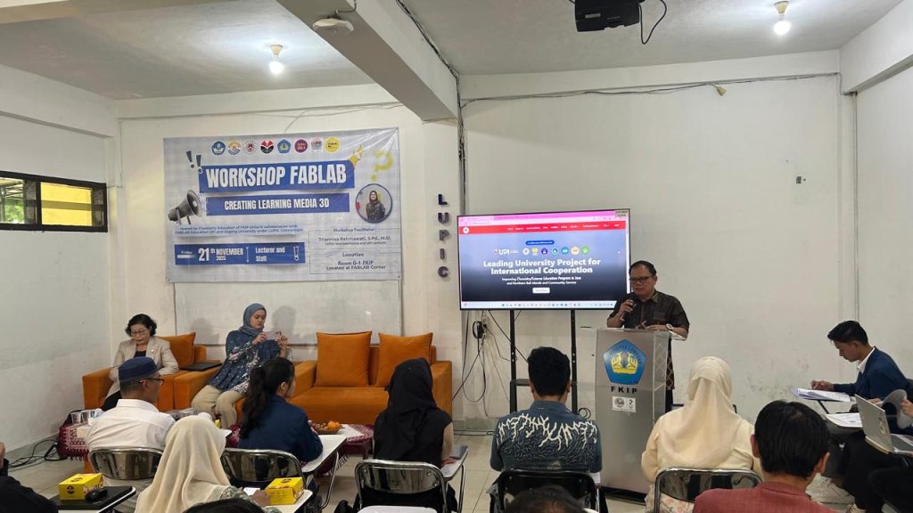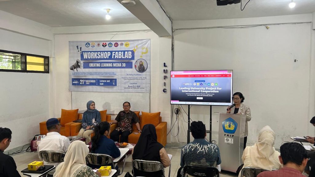 (Eduspot fkip.unila.ac.id): Program Studi Pendidikan Kimia Universitas Lampung (Unila) kembali melanjutkan rangkaian workshop Fabrication Laboratory (FABLAB) bertema “Creating Learning Media 3D” yang digelar di Gedung G1 FKIP Unila pada Jumat (21/11). Kegiatan ini merupakan bagian dari agenda dua hari hasil kolaborasi Unila, Universitas Pendidikan Indonesia (UPI), dan Sogang University Korea melalui program Leading University Project for International Cooperation (LUPIC).